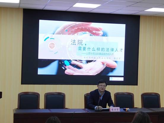 会后,蒋卫宇院长为我校法学专业学生做了主题为“法院,需要什么样的法律人才”的讲座。讲座中,蒋院长分享了个人的学习和工作经历。他提出,法院需要的法律人应当要有法治情怀、有工匠精神、有社会经验、有跨界能力、有社会良知,勉励同学们坚定法律人的信仰和目标,好好学习,将来成为具有良善之心的好法官。讲座结束后,蒋院长对学生们提出的问题一一进行了耐心解答,赢得场上阵阵掌声。