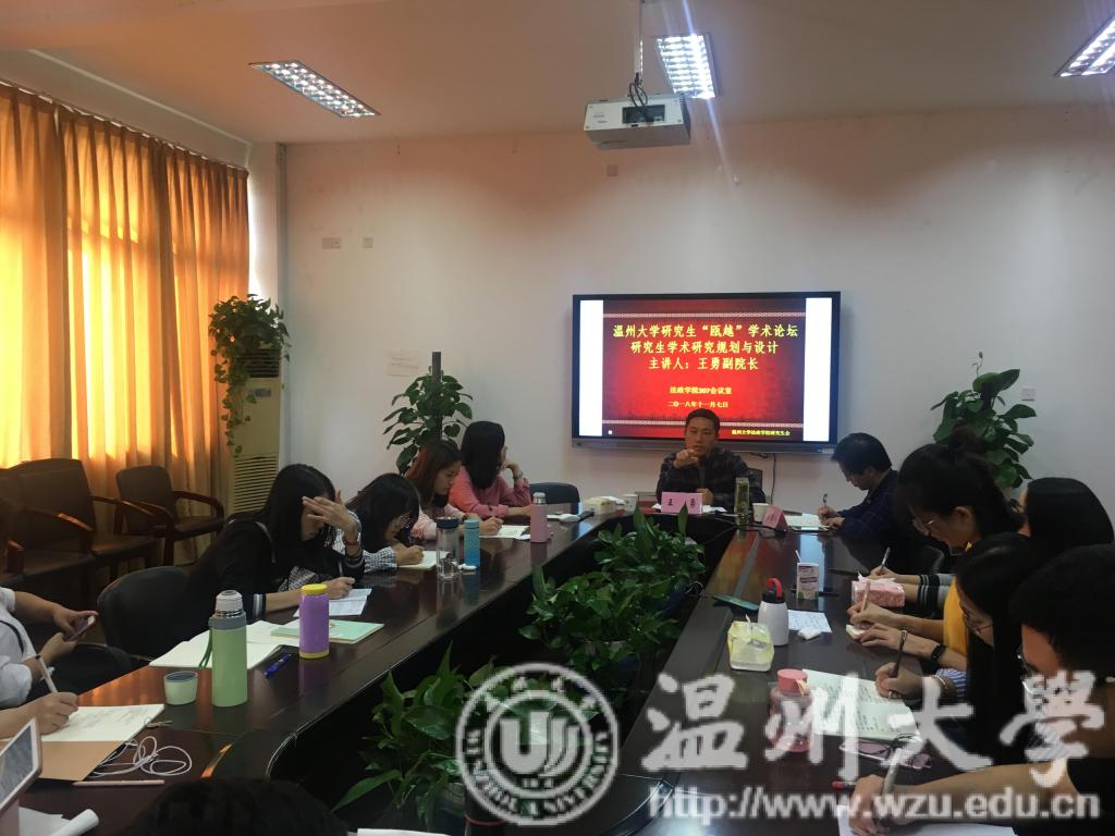 2018年11月7日下午14时,香蕉视频 研究生“瓯越”学术论坛在法政香蕉视频 香蕉视频 307教室举行。此次论坛由法政香蕉视频 王勇副院长主讲,由法政香蕉视频 研究生辅导员邓昌云老师主持,法政香蕉视频 2017级及2018级部分研究生参加了本次讲座。本次论坛主要从如何安排研究生学习生活、如何研究性学习以及如何申报课题三个方面展开讨论。