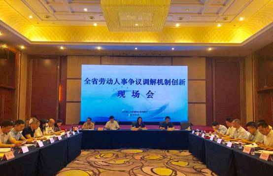 5月17日至18日,全省劳动人事争议调解机制创新现场会在诸暨召开。会议传达了全国劳动人事争议调解仲裁工作座谈会精神,总结党的十八大以来我省调解仲裁工作经验,各地市局长(院长)作了经验介绍,瓯海等五家单位作了典型发言,会议表彰2017年度优秀单位、个人,公布了示范仲裁庭,省人社厅副厅长兼省公务员局长龚和艳作了“以新时代枫桥经验推动我省劳动人事争议调解仲裁高质量发展”的重要讲话,省高级人民法院、省司法厅、省公安厅、省军事法院、省总工会以及省人社厅相关处室等参会。