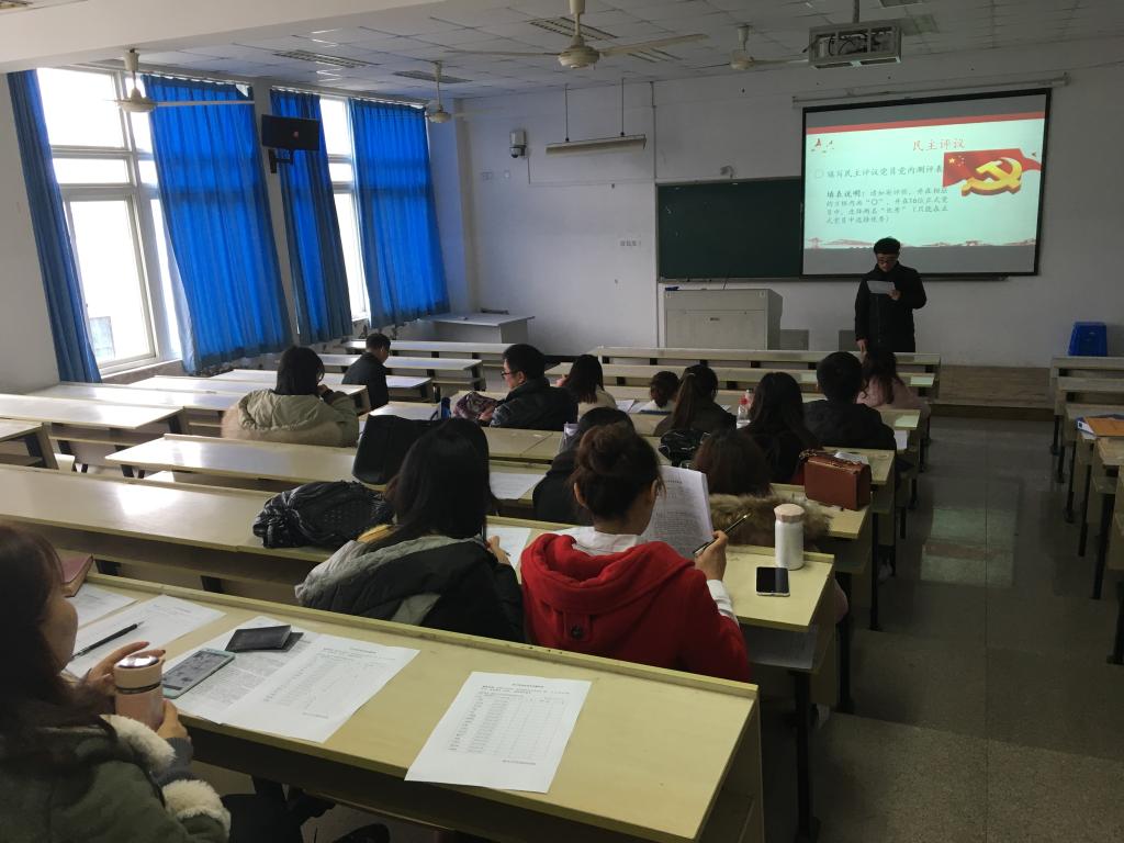 2018年1月15日,香蕉视频 法政香蕉视频 研究生党支部全体党员开展了2017年度党员民主评议专题组织生活会,此次会议由屈红艳同志主持。党支部书孙德升老师首先发言,提出同志们要结合自身要求和党务工作中的不足展开自我批评,并向各位党员提出了今后努力的方向。孙德升老师向党员介绍了2017年度民主评议党员工作的指导思想、评议要求、内容及评议方法,明确提出了每位党员在深入学习十九大精神的基础上,对照民主评议的标准,根据《中国共产党章程》规定,结合自身实际,认真总结一年来的思想、工作和学习情况,尤其在党员固定活动和日常学习中是否充分地发挥了党员的先锋模范带头作用。