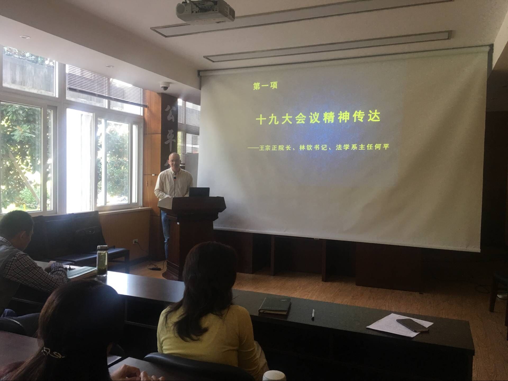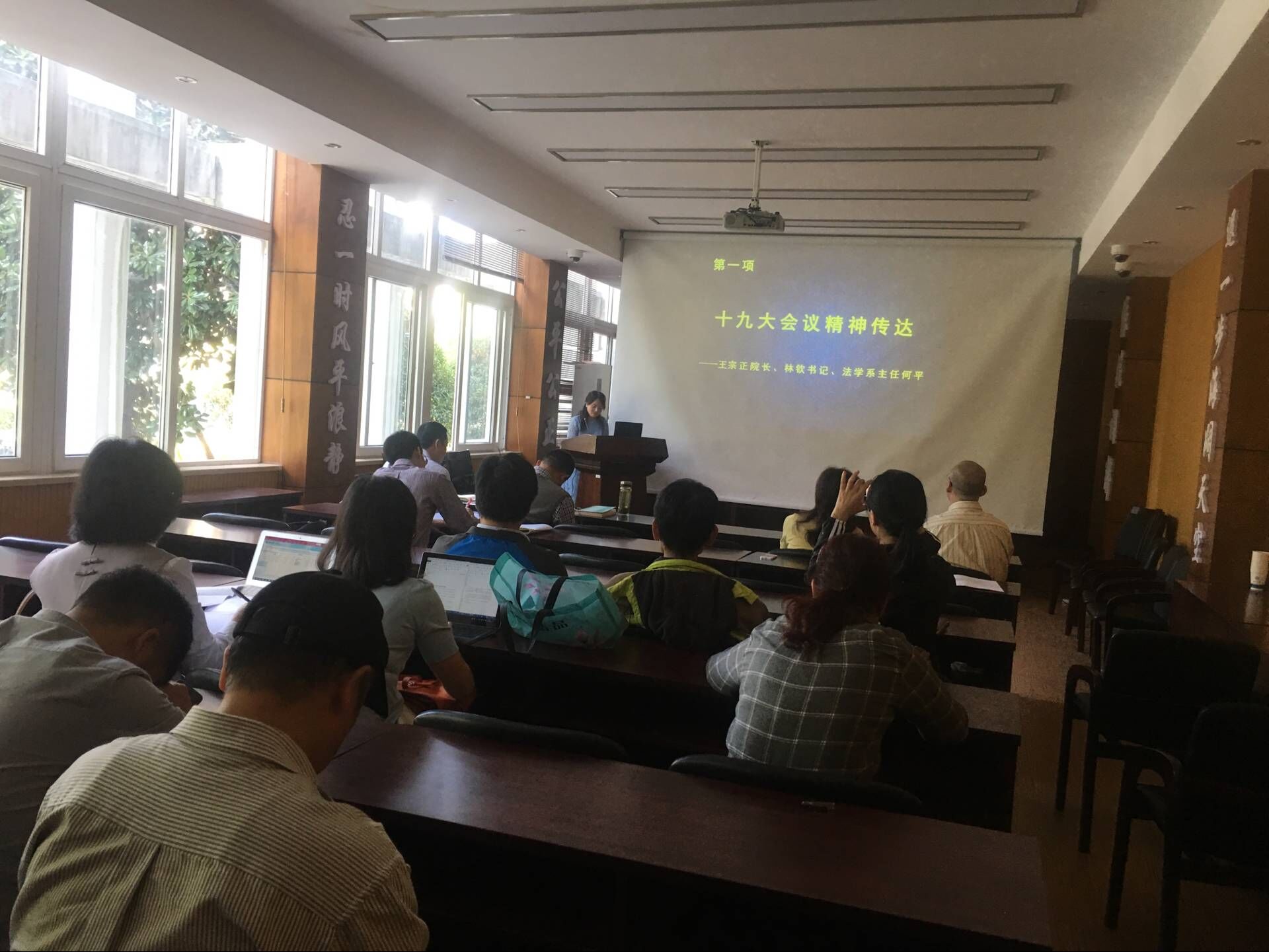 年10月25日下午,在法政香蕉视频 报告厅举行了全体教工和学生党员学习会,会议由林钦书记主持,全体教工和学生党员参加。