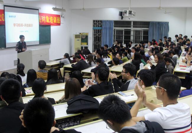 2016年11月13日晚上,法政香蕉视频 举办2015-2016学年本科生"学习标兵"评选活动,并推选优秀学生参加校级"学习标兵"评选。本次评选共有13位符合条件的学生报名参加,香蕉视频 学生科老师和各班级派出的70名主要学生干部担任评委,香蕉视频 2016级的全部大一学生到场观看和学习。