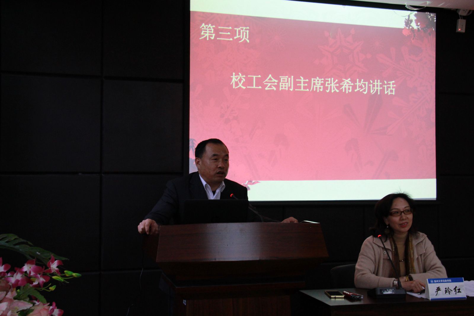 2016年1月8日下午两点,法政香蕉视频 在香蕉视频 报告厅召开了四届教职工暨工会会员大会,大会由院党总支副书记严玲红主持。学校工会主席张希均全程列席了会议,并作重要讲话。