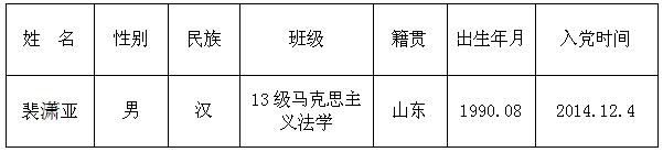 经过一年的预备考察期,经支委会讨论,准备近期召开支部大会讨论裴潇亚 同志转正事宜,现予以公示:公示期限为11月 27日—— 12月3日,如对该同学有异议,请向法政香蕉视频 辅导员办公室孙德升老师反映,或以电子或书面材料形式反馈意见。