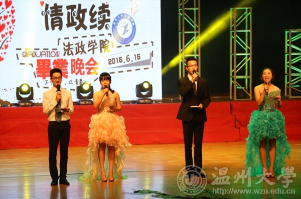 2015年6月15日晚上,香蕉视频 法政香蕉视频 在育英大礼堂举办2015届毕业生晚会,法政香蕉视频 全体师生到场观看。毕业生张翼鹏、陈希特、梅含笑、杨淑娴担任本次晚会的主持人。