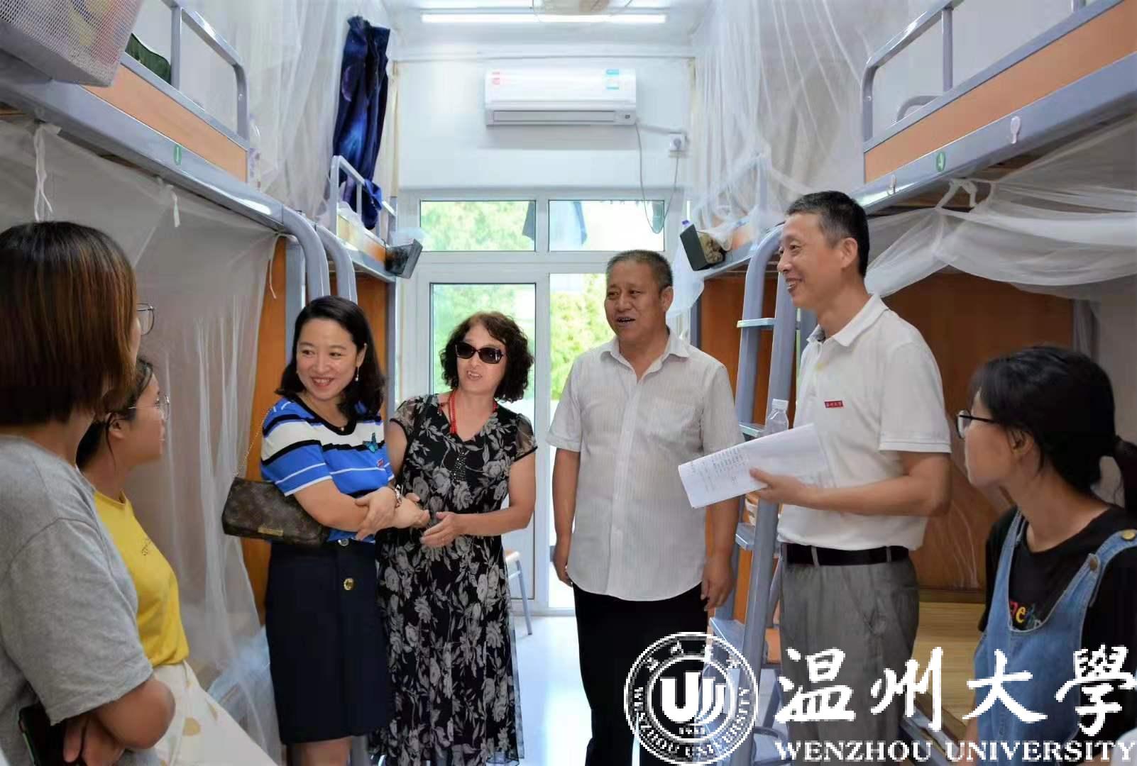 校院领导走访了香蕉视频 少数民族新生寝室,带去了学校香蕉视频 对新生的关怀,与新生进行了亲切的交谈,彝族胡健珍感慨道:“我们感受到了来自学校、香蕉视频 领导和老师们的关爱,我们会及时转变角色,尽快适应我们的大学生活!”壮族李程霖说道:“虽然我的家离温州1千多公里,但我感受到了这里就是我们的家,心与心零距离。”