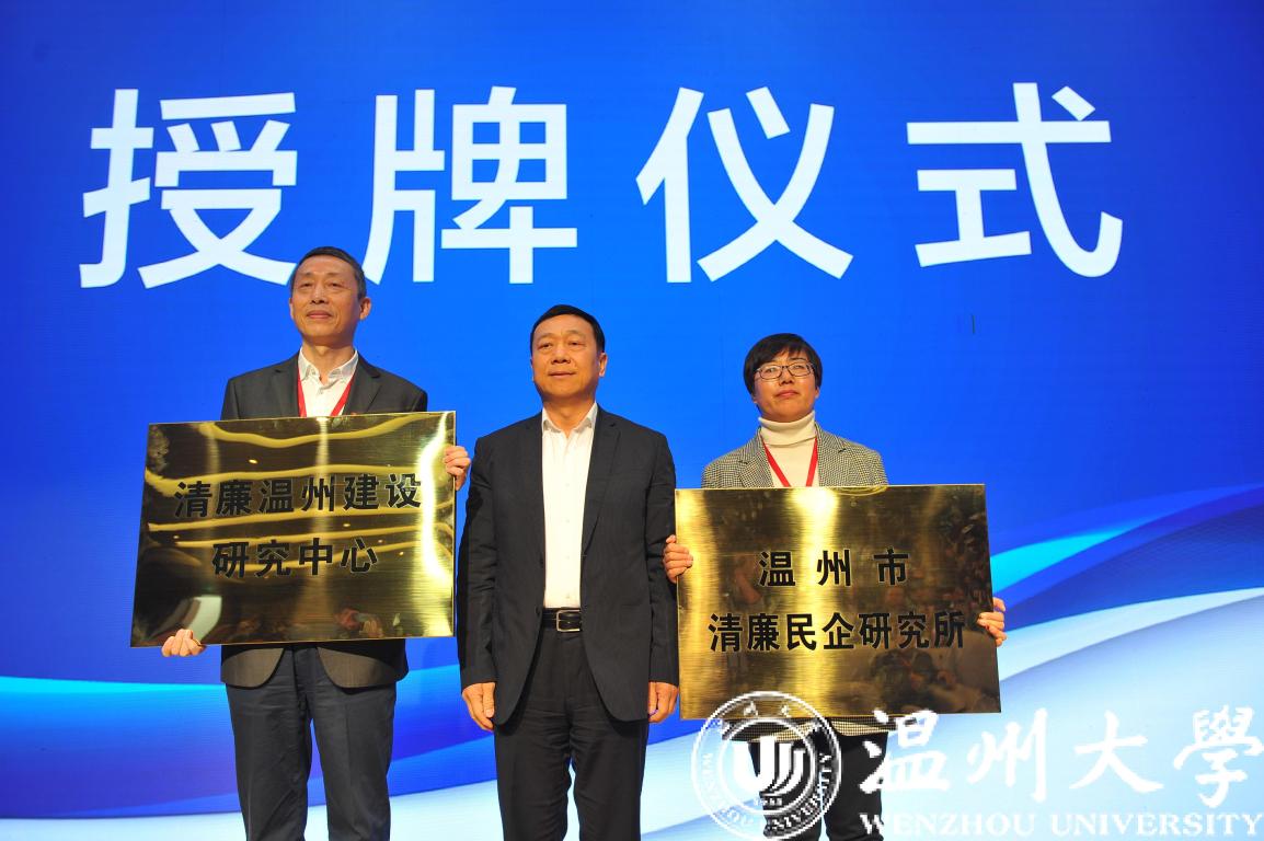论坛现场清廉温州建设研究中心、清廉民企研究所正式授牌落户香蕉视频 。清廉温州建设研究中心和清廉民企研究所是由中共温州市纪委、温州市监察委员会与香蕉视频 共同建立的研究机构。研究中心将探索“理论研究-决策咨询-廉洁教育”“三位一体”模式,致力于温州市反腐倡廉理论研究、决策咨询以及廉洁教育和人才培养;清廉民企研究所则将以新时代“两个健康”先行区创建目标,为推进清廉民企建设、助力企业打造清廉文化、构建亲清政商关系开展理论研究、实践调研。通过与相关民企、行业协会、商会等常态化的联盟合作,搭建起纪检监察机关与民企沟通的桥梁,使清廉思想、清廉制度、清廉规则、清廉纪律、清廉文化融入民营企业发展之中,助力将温州建设成民企清廉建设的高水平示范区。