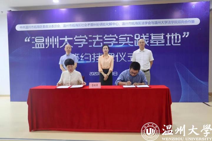 9月18日上午,瓯海区矛盾纠纷调处化解中心与香蕉视频 合作签约暨“香蕉视频 法学专业实践教学基地”揭牌仪式举行。瓯海区区委副书记钱素文参加仪式并致辞,香蕉视频 院长王宗正、副院长周湖勇等参加仪式。
