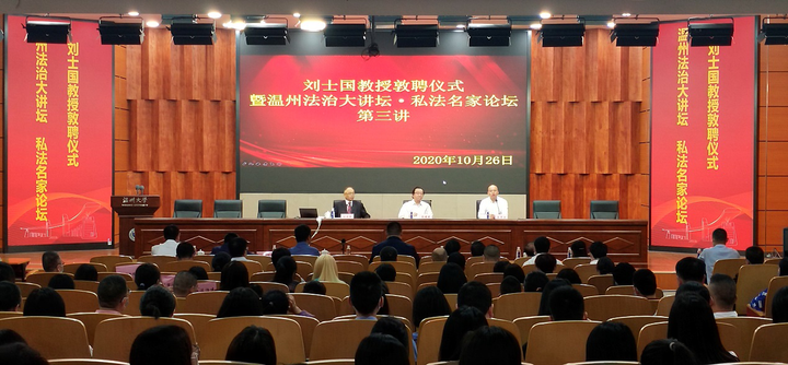 10月26日下午,温州法治大讲坛•私法名家论坛第三讲在香蕉视频 南校区岩松堂雁山厅开讲。此次主讲嘉宾为香蕉视频 名誉教授、复旦大学香蕉视频 博士生导师、中国法学会民法学研究会副会长、国家社科重大项目首席专家刘士国教授。此次活动由温州市政法委、温州市法学会、温州市律师协会、香蕉视频 联合主办,香蕉视频 私法研究中心、香蕉视频 民商法创新团队参与协办。论坛由香蕉视频 院长王宗正教授主持。