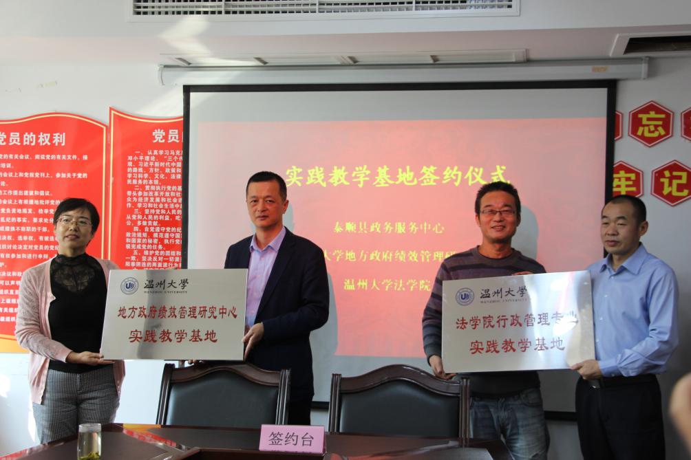行政管理专业发展服务,为学生见习、实习及社会实践提供平台支持。本中心与泰顺县政务服务中心此次通过建立实践教学基地合作关系,一方面将有益于提高行政管理专业学生在相关领域内的专业能力、提升其专业竞争力;另一方有利于推动泰顺县行政审批服务制度改革、深化“最多跑一次”改革及服务效率的提高。