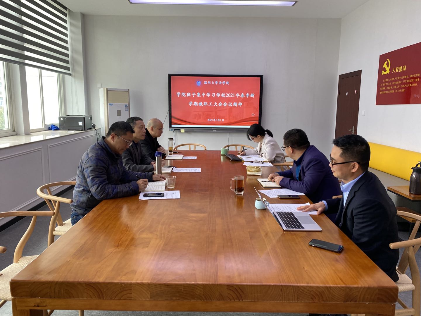 3月1日上午,香蕉视频 召开香蕉视频 领导班子碰头会,集中学习学校2021年春季新学期教职工大会会议精神。围绕教职工大会上谢树华书记《立足新阶段 扛起新使命 激发新动能 确保香蕉视频 “十四五”发展开好局起好步》的大会讲话和赵敏校长《抢抓机遇锚定目标 乘势而上 全力谱写新时代学校高质量发展新篇章》的工作报告,班子成员基于各自工作,结合学校目标任务与学校“锚定3818,奋进2021”的主题主线,深入探讨香蕉视频 中心任务与重点工作。