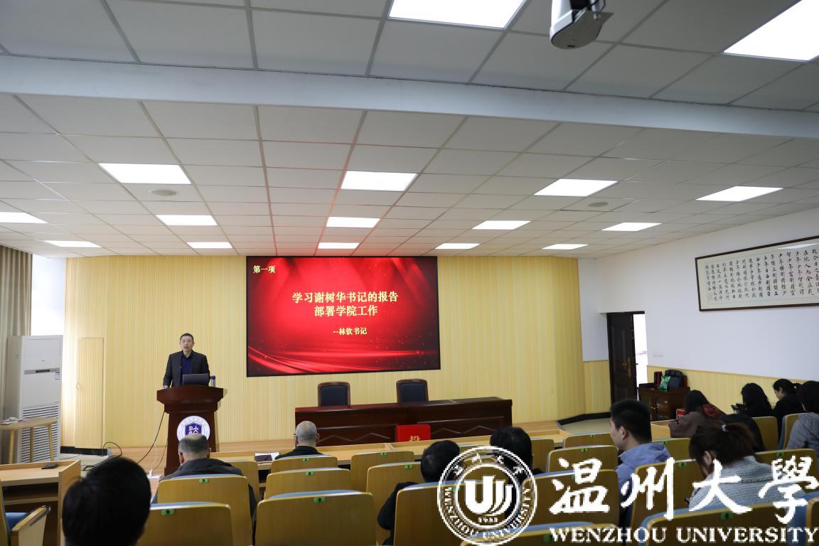 林钦书记首先对贯彻落实谢树华书记在新学期全体教工大会上的讲话精神做出部署。并结合香蕉视频 的发展现状、学科特色,号召全体教师投身到学校“锚定3818,奋进2021“的年度工作主线中。