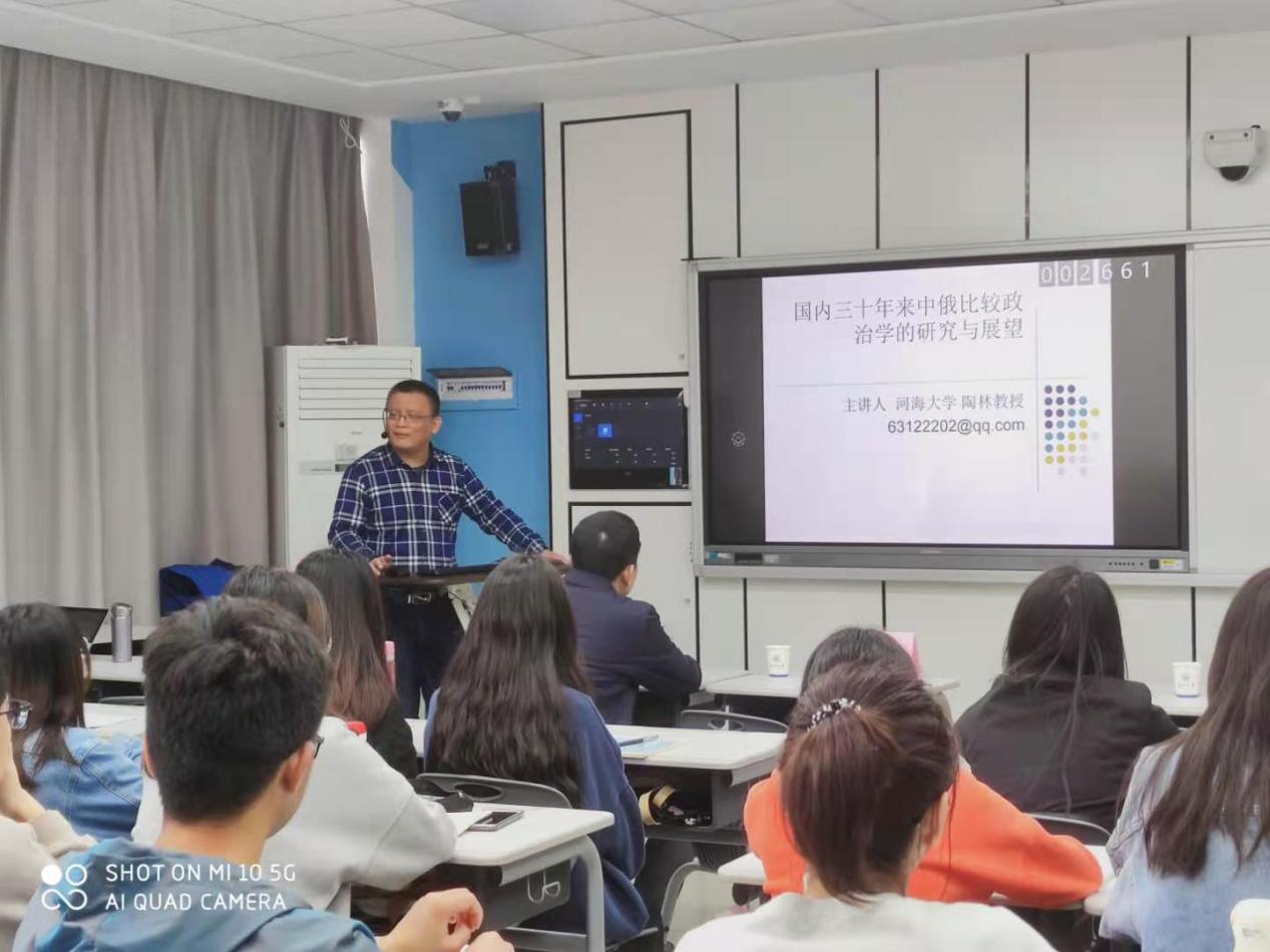 会议过程中,陶教授和与会学者们不断进行研讨,同学们也踊跃发言、积极提问,与陶教授精彩互动。最后,陶教授亦期许大家参与到中俄比较政治研究领域中来,并认为未来研究可以从意识形态、外交、一带一路、政党制度、软实力、整体历史观比较等六方面做出拓展。