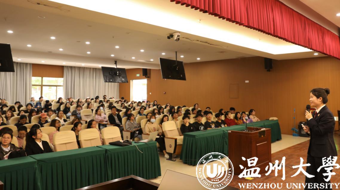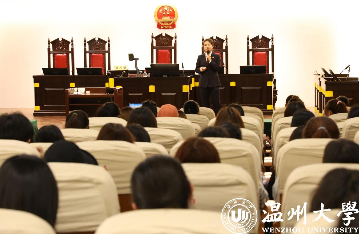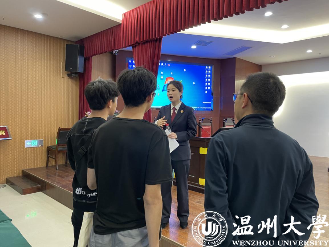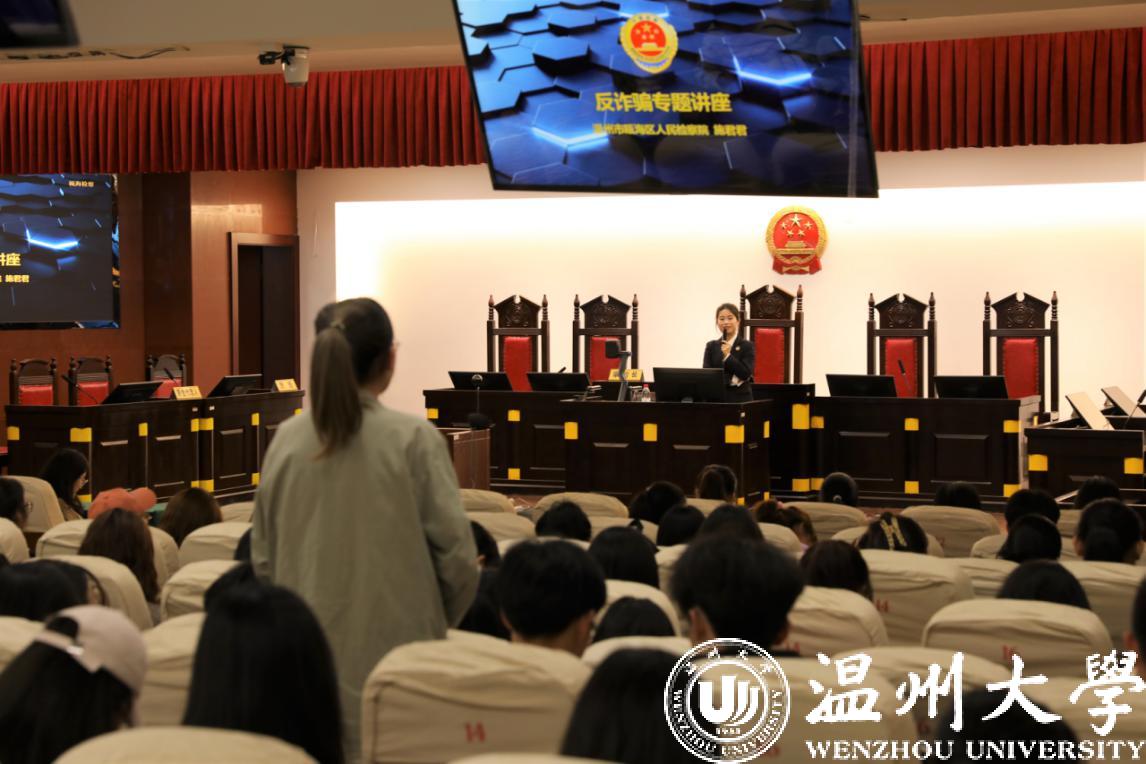 为切实做好安全宣传教育,增强学生防诈反诈意识,营造平安和谐的校园环境,4月7日下午,香蕉视频 于北校区模拟法庭组织了防诈骗专题讲座。讲座由林丽丽老师主持,特别邀请到温州市瓯海区人民检察院检察官施君君为同学们主讲。