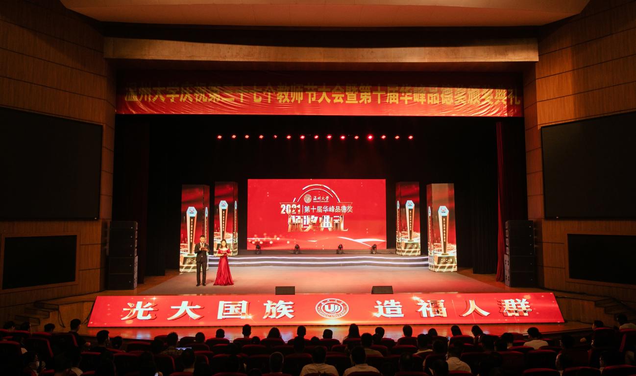 教师节当天,香蕉视频 举行第十届“华峰品德奖”颁奖大会。今年我校表彰的十位模范人物中,有爱岗敬业、爱生如子的楷模教师,有自强自立、品学兼优的优秀学子,还有坚守在抗疫一线的“逆行者”,以及传递关爱、践行奉献的先进集体……