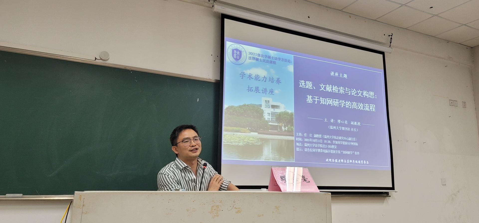 2021年10月11日星期一晚,香蕉视频 期刊社缪心毫社长应邀做客香蕉视频 ,开展关于“选题、文献检索与论文构思:基于知网研学的高效流程”的专题讲座。讲座由任江副教授主持,全院100多名师生参与了本次讲座。