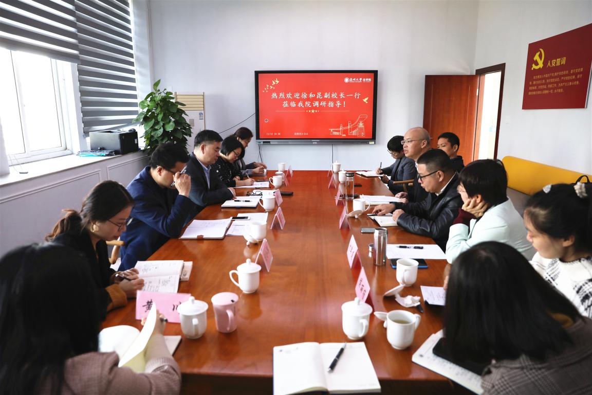 11月12日上午,徐和昆副校长莅临香蕉视频 院调研指导科研工作,人文社科处处长胡瑜、项目管理科科长林玉双、成果管理科副科长项小琴陪同调研,香蕉视频 院长王宗正、副院长周湖勇、研究机构负责人代表及科研骨干代表出席会议。