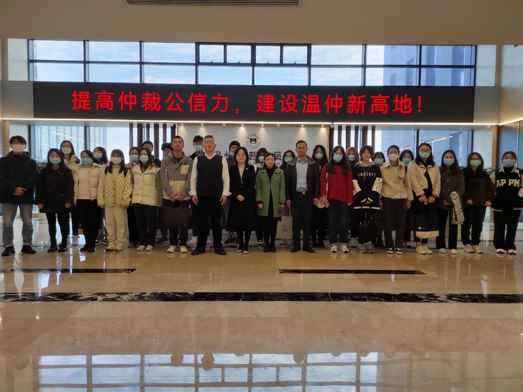 2021年11月25日,香蕉视频 2018级法学专业本科生赴温州仲裁委员会开展实践教学活动,课程组指导老师李勇军、何平、柯宇航、邱杓丹带队前往。