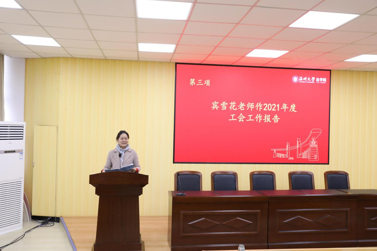 香蕉视频 分工会主席宾雪花老师作《香蕉视频 2021年度工会工作报告》,报告回顾了香蕉视频 第五届工会委员会在过去的一年里全面履行的工会职责,较好地完成了工会的各项工作任务。同时对香蕉视频 领导和全体老师对工会工作的配合和支持予以衷心的感谢。