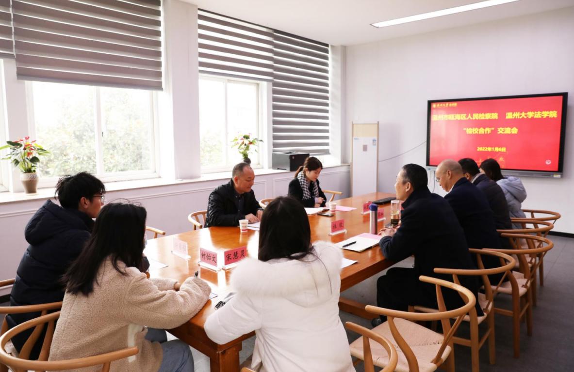 2022年1月6日上午,温州市瓯海区人民检察院党组成员兼政治部主任黄利昌、瓯海区人民检察院政治部副主任施君君来香蕉视频 座谈,交流探讨深入开展“检校合作”有关事宜。香蕉视频 院长王宗正、香蕉视频 党委书记林钦、香蕉视频 党委副书记兼纪委书记杨振海、辅导员白昌科出席会议,4名学生代表参与座谈。