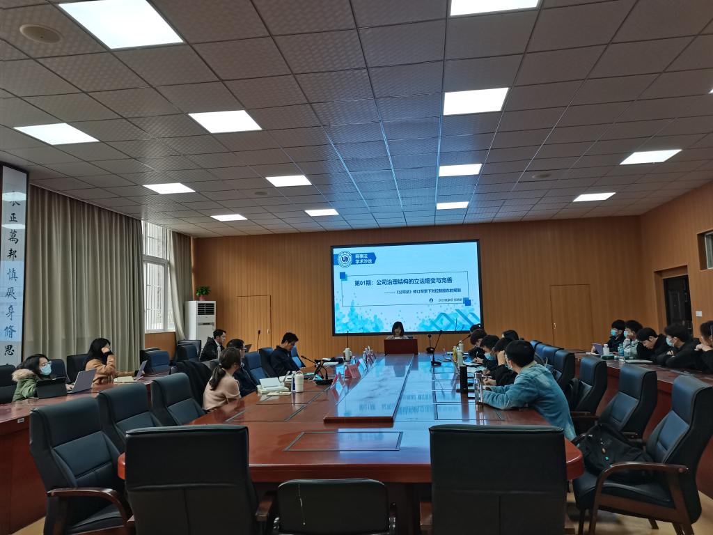 2022年3月23日下午14:30,筹备已久的“商事法学术沙龙·第01期”活动在香蕉视频 一楼103会议室顺利进行。首期沙龙的主题是“公司治理结构的立法嬗变与完善”,2020级民商法学硕士研究生郑晓娟、曲昱霖和2021级民商法学硕士研究生王小翠和仲昌礼分别围绕主题作专题报告,王宗正教授、赵金龙教授、李勇军副教授、陈景伟博士和柯莉拉博士作为点评人参与沙龙讨论。