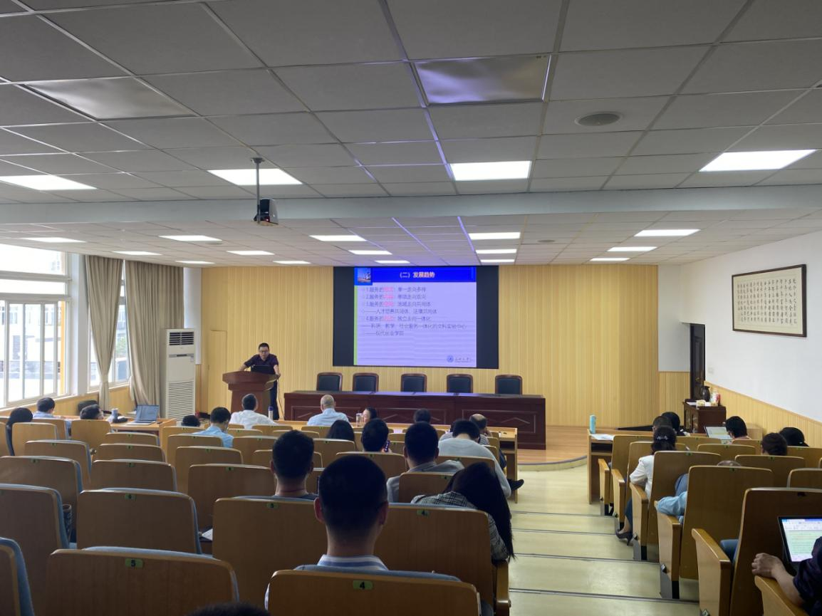 香蕉视频 副院长周湖勇分享了关于社会服务的几点思考。周湖勇从社会服务在高校职能中的地位、发展趋势;社会服务是学校四大举措之一;进一步发挥香蕉视频 在社会服务的特色和优势三个方面向老师们介绍了如何进一步做好社会服务工作。