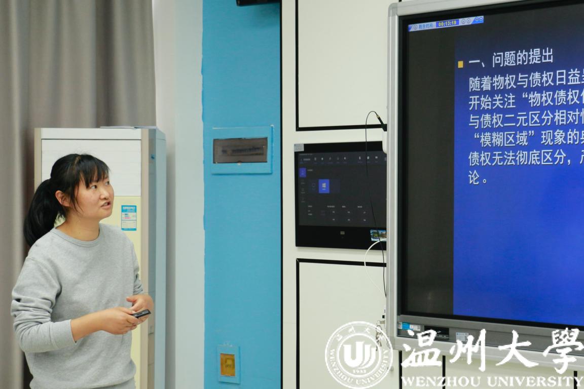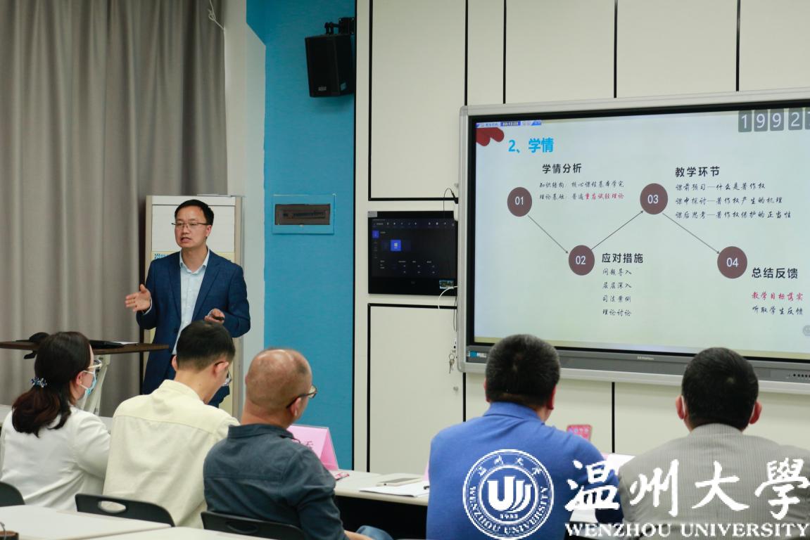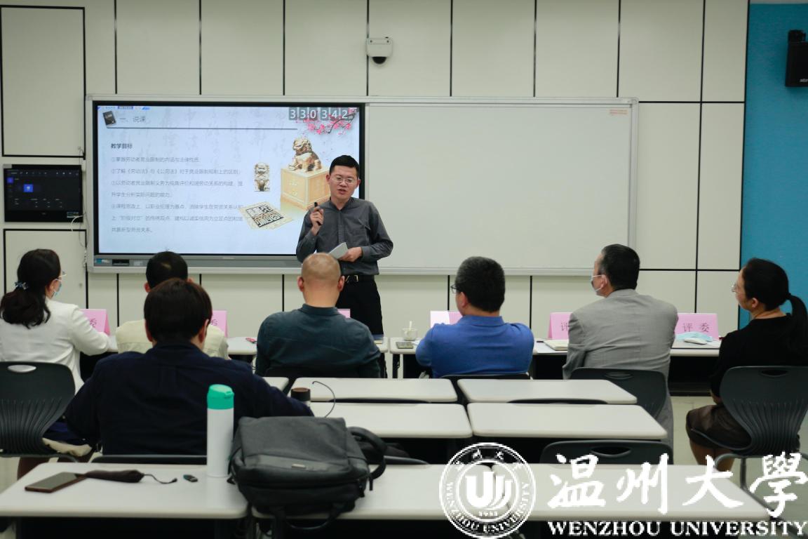 汪银涛老师通过劳动法与婚姻法的关系引入本次“劳动者的竞业限制义务”的课程,用幽默诙谐的语言与评委进行互动式问答,用新颖的问答式教学方法,以解决问题引导学生学习知识点,大大提升了学习效率。