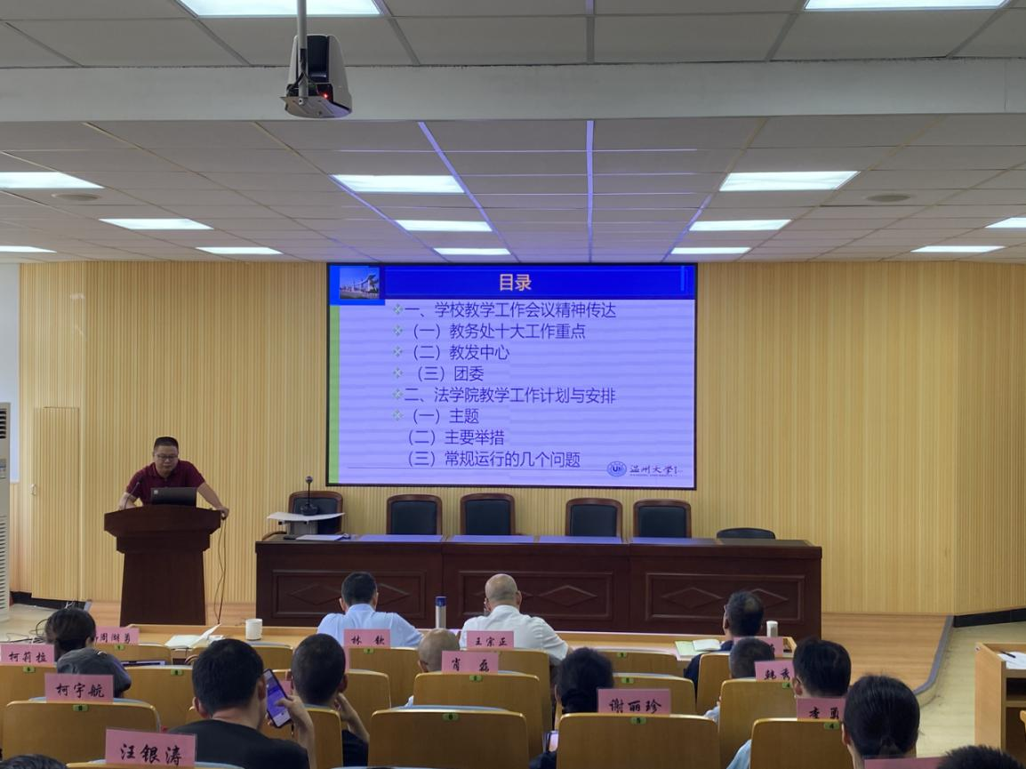 党委副书记杨振海进行师德师风先进事迹学习与典型案例警示教育。会上学习了人民教育家高铭暄的先进事迹,并以教育部公开曝光的7起违反师德的典型案例警示教师思想政治和师德师风建设要一刻不松,常态化教育和案例警示教育要一刻不停,师德师风建设长效机制要一贯到底,师德失范行为依规处理要一严到底。