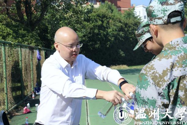 10月13日,香蕉视频 院长王宗正、党委书记林钦、党委副书记杨振海一行前往北校区足球场,慰问香蕉视频 军训新生。香蕉视频 为新生准备了温大定制水和小面包,为炎热的军训场送来了一丝清凉。