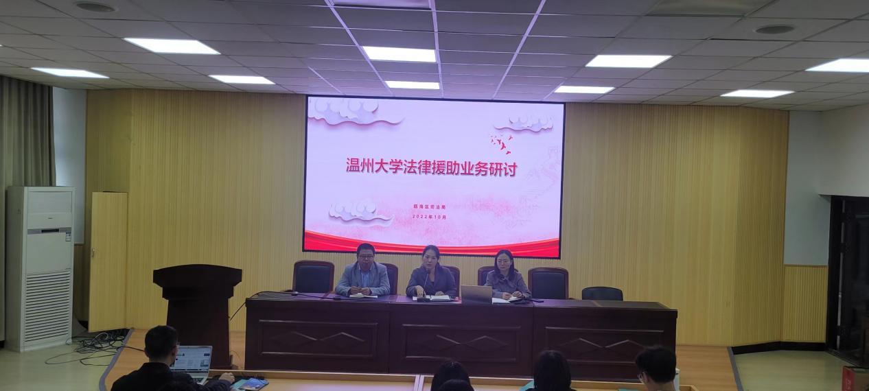 此前,瓯海区司法局和香蕉视频 做了充分的准备,香蕉视频 按照要求配备专业设备和场所。10月28日,瓯海区司法局副局长杜萍萍及法援中心主任章蓓蓓来基地检查督促,还与香蕉视频 举办了“香蕉视频 法律援助业务探讨”培训会议,对接线的教师及学生进行了简要的业务培训。