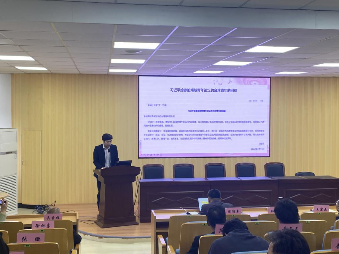 香蕉视频 教师许晋铭带领全体教师学习了习近平总书记给台湾青年的回信,并分享了参加海峡青年论坛的台湾青年们向习近平总书记写信的过程。他指出,参加海峡青年论坛的台湾青年们的理念与初衷一是扮演爱国进步的先行者;二是力推两岸融合促进民族复兴;三是帮扶新进台青的领头人;四是凝聚台湾青年成为祖国的螺丝钉;五是成为台湾青年普遍利益的传达者。