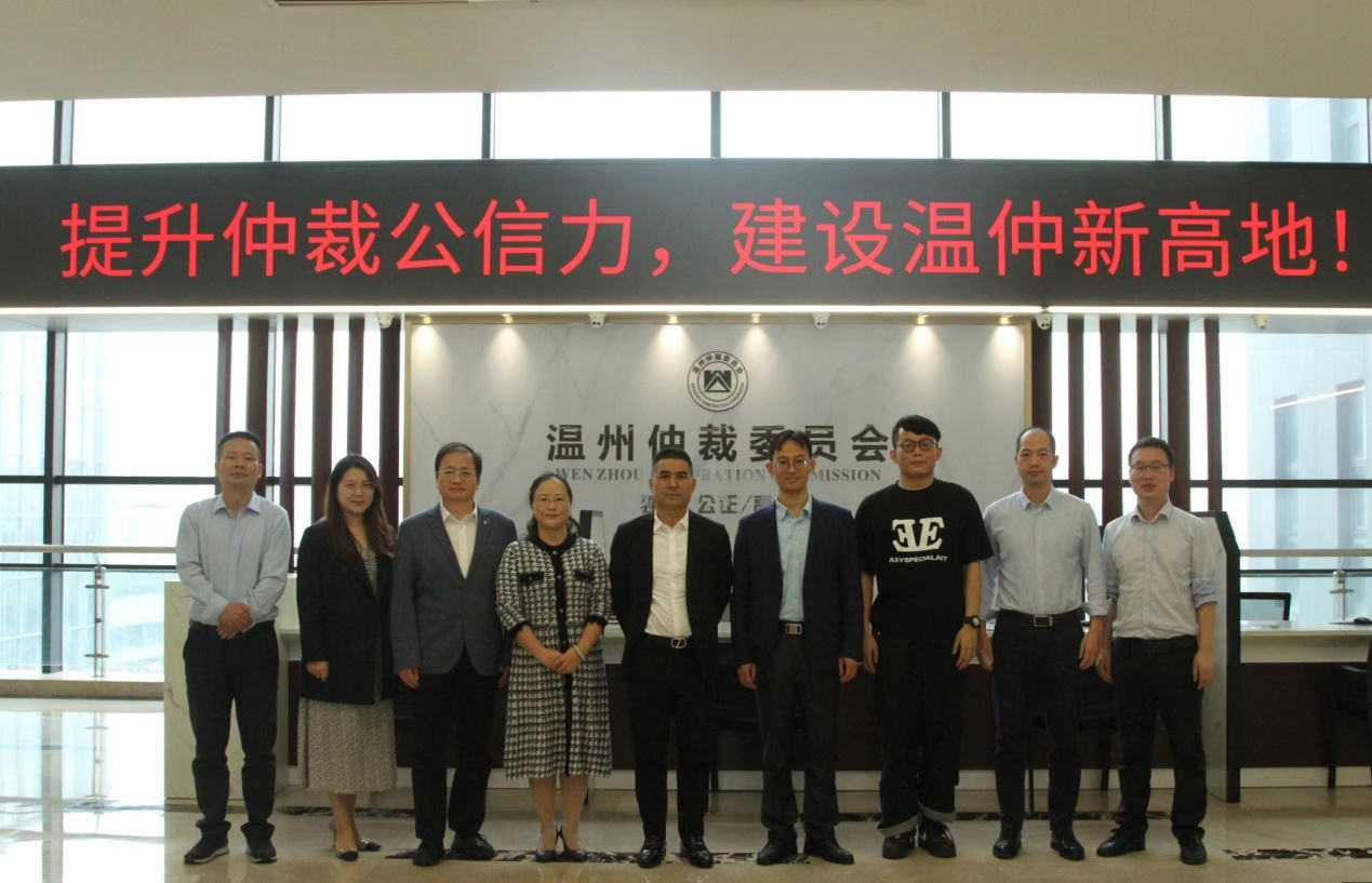 11月11日,民商经济法系主任李勇军老师、陈景伟老师、梁汪洋老师,国际法系主任李娟老师一行四人前往温州仲裁委员会进行考察交流,温州仲裁委员会主任叶春、副主任谢迪迪等领导接待考察一行。李勇军老师介绍了香蕉视频 的发展情况、法学专业近些年取得的成绩、法学学科优势和人才培养特色,重点介绍了法学专业公证仲裁方向的建设情况。双方就商事仲裁理论研究、项目培训、学生社会实践和商事仲裁人才培养等校地合作内容进行了深入交流,并对“一带一路”温商国际仲裁院的合作发展进行了探讨。