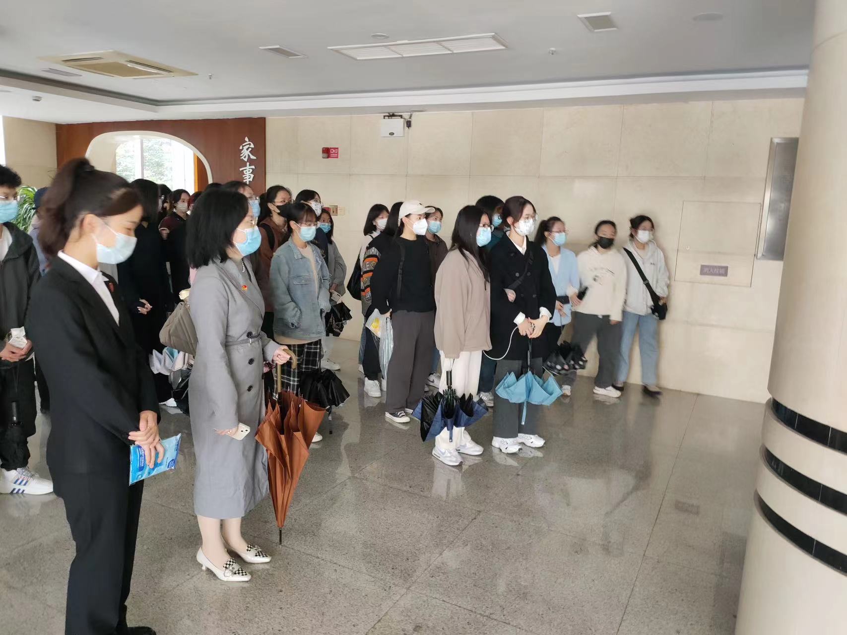 2022年11月25日早上9:00,香蕉视频 20法学1班的同学们来到温州市瓯海区人民法院进行《职业观察与体验》(二)实践课程的研习。本次活动主要采取线下参与的模式,在香蕉视频 邱杓丹老师的带领下,20法学1班四十余人参加了此次活动。