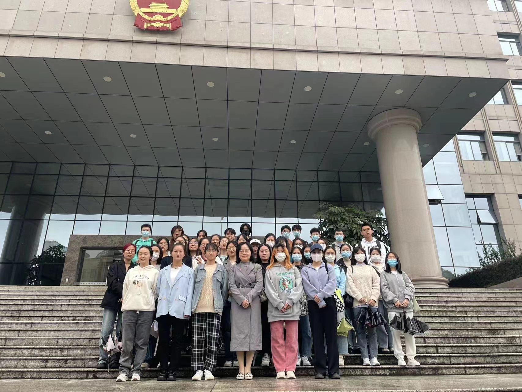 在旁听庭审部分,同学们主要熟悉了刑事审判的流程和高空抛物罪的构成和他罪区分,让大家对《刑法》(修正案十一)新增加的高空抛物罪有了非常清楚的认识。该案适用速裁程序,书本中速裁程序的基本内容也在现实中一一展示。在庭审后,审判长简单介绍了高空抛物罪的历史,具体构成要件和考察目的,并提出在实践中要从时间、地点、物品、后果综合考量是否构成高空抛物罪的观点,同学们以热烈的掌声表示感谢。由此,同学们对该罪的要件构成和具体实践中的表现形式有了更深层次的认知,也更认识到了其与以危险方法危害公共安全罪等其他罪名之间的区别,无论是从理论层面还是从实践层面都收获颇丰。