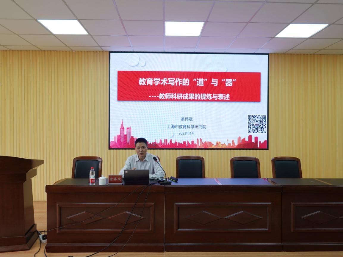 4月14日下午,香蕉视频 邀请上海市教育科学研究院研究员翁伟斌以《教育学术写作的“道”与“器”---教师科研成果的凝练与表述》为题为香蕉视频 教师作学术分享。讲座由香蕉视频 党委书记林钦主持,香蕉视频 全体教职工参加本次讲座。