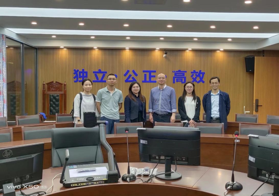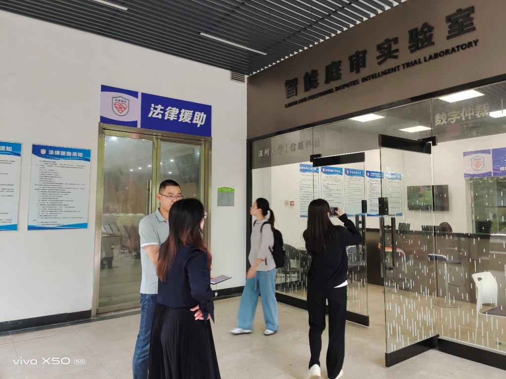 座谈会后,考察一行还参观了入驻香蕉视频 的瓯海区劳动人事争议仲裁委员会高教园区派出庭和瓯海区公共法律服务12348热线,并对模拟法庭建设与使用进行了交流。