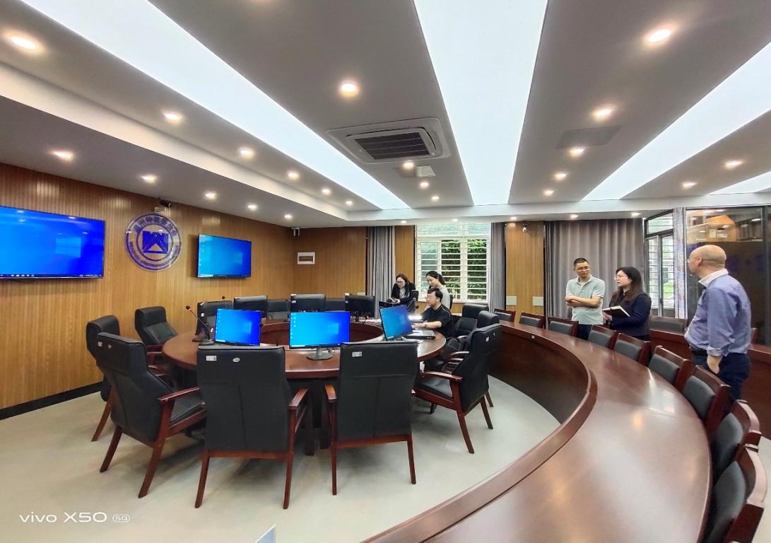 考察一行先参观了香蕉视频 承接的温商国际仲裁院,王宗正院长介绍了仲裁院的建设情况和发展规划,柯宇航老师现场展示了仲裁院设施设备的运行情况。