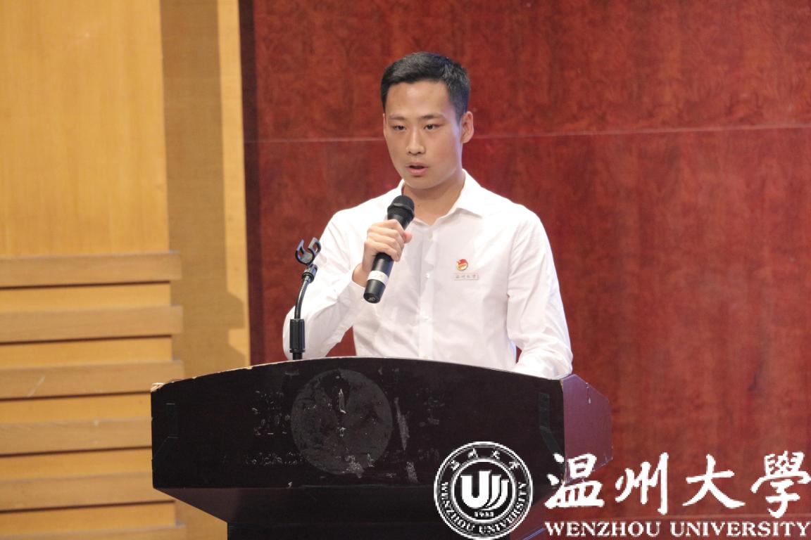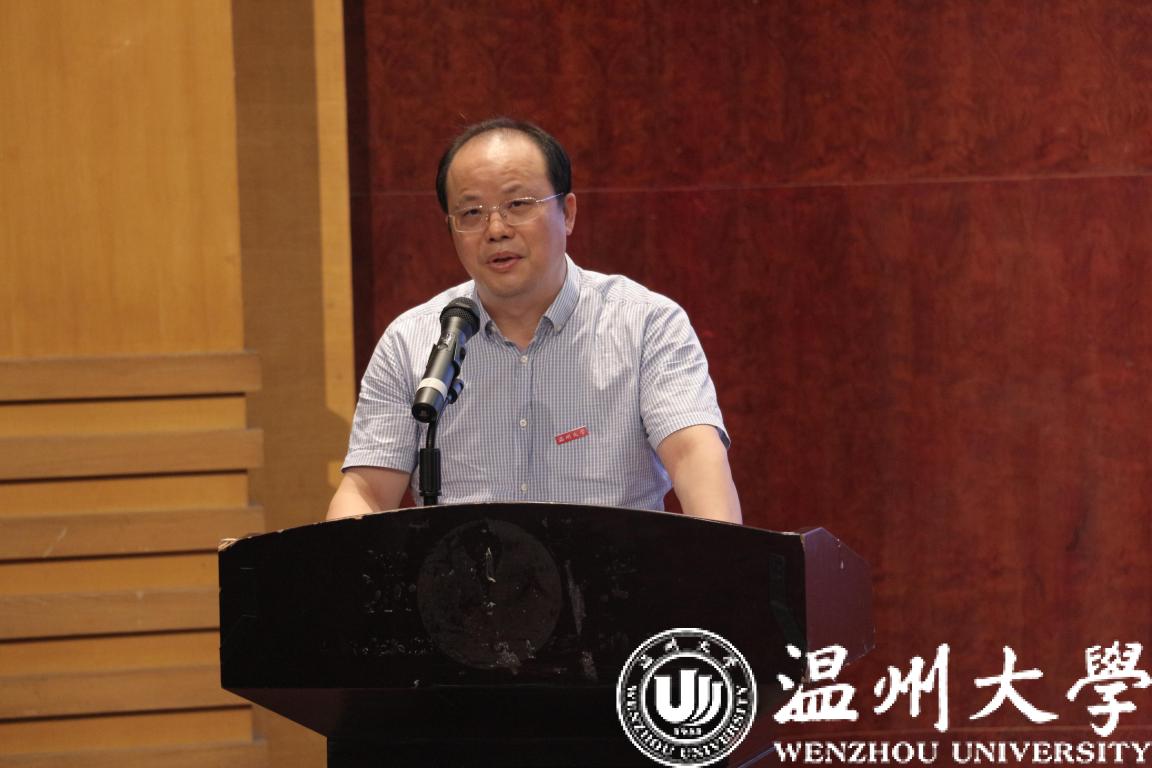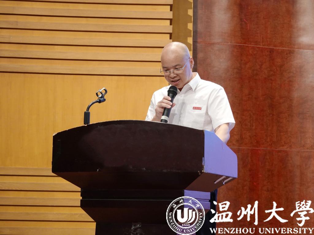 教师代表叶肖华教授发言。叶肖华教授作教师代表发言。他期望同学们尽早明晰自己的大学生活的方向,并希望同学们能够在接下来的日子里勇敢尝试、磨砺自我,在温大开创出属于自己的精彩!