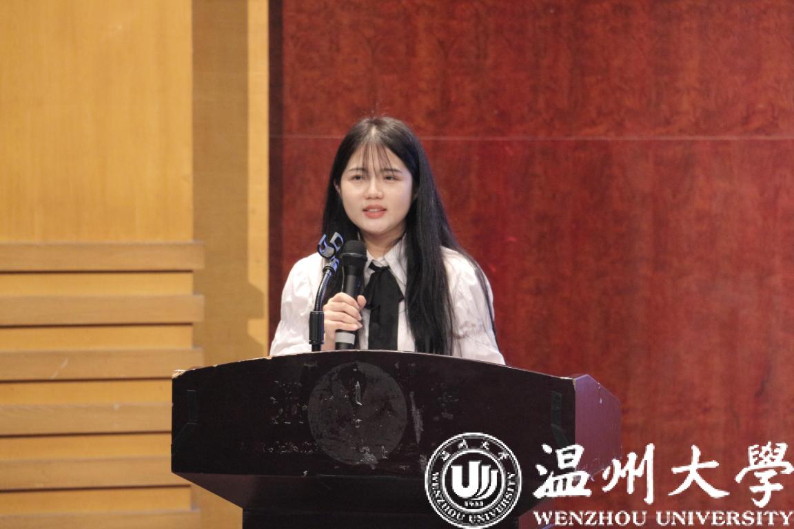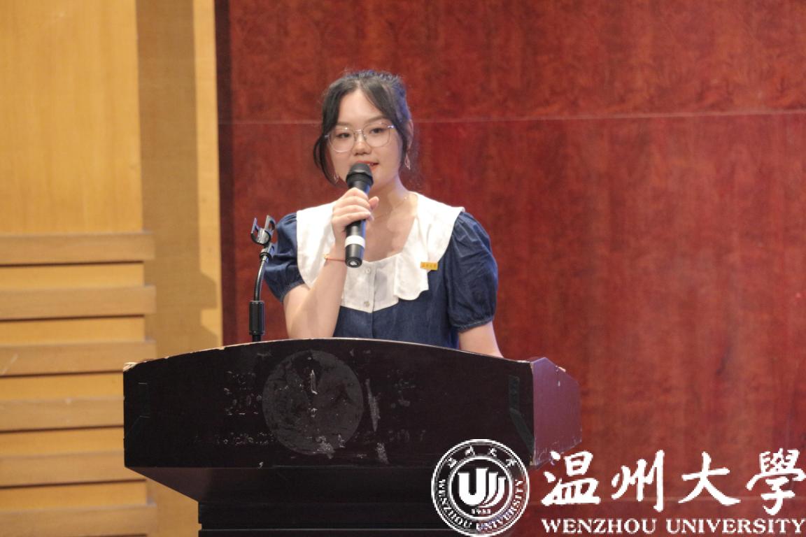 研究生新生代表杨钰莹同学发言。杨钰莹同学讲述了5年在温大香蕉视频 的求学经历,提出了对自己未来漫漫求学路的期望,潜心磨砺、携手同行,共同谱写壮美的青春篇章。