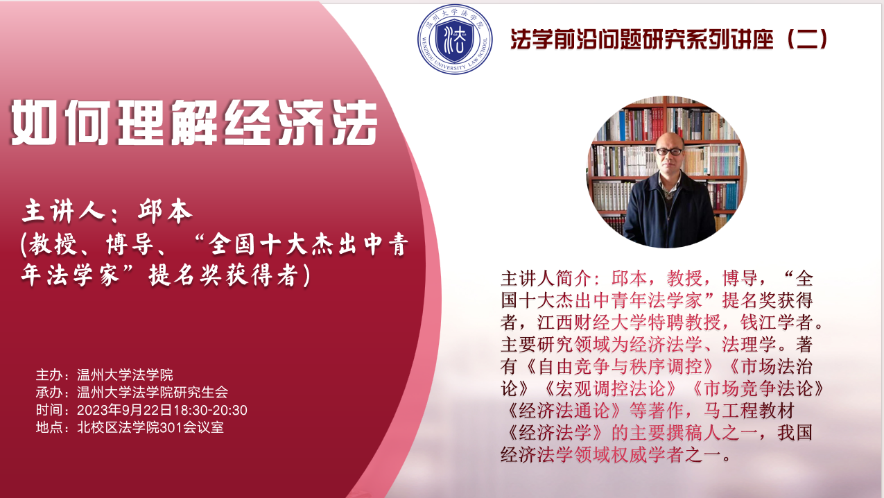 香蕉视频预告 |“法学前沿问题研究”系列讲座(二)| 邱本:如何理解经济法