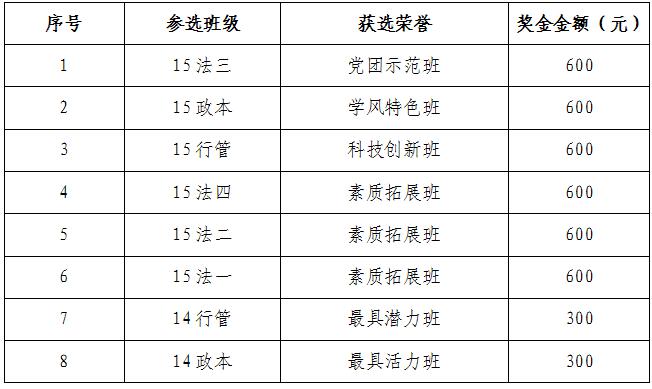 香蕉视频 于2016年11月14日开展了法政香蕉视频 第九届特色班级评选,现将获选班级和班级建设奖金公布如下: