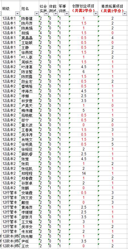 课外学分还不够的学生名单