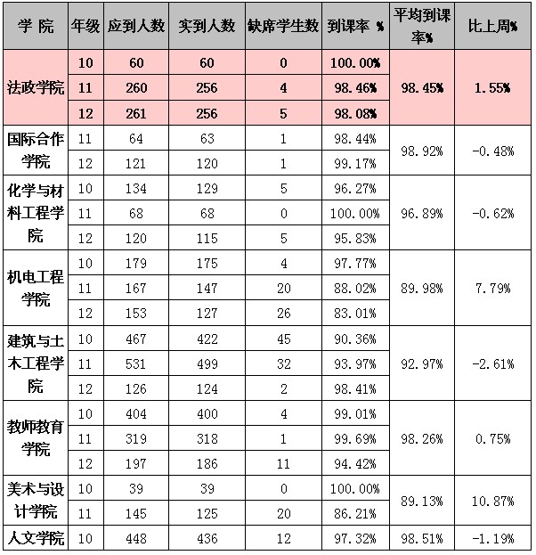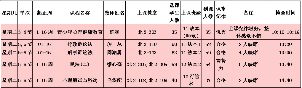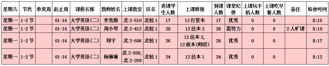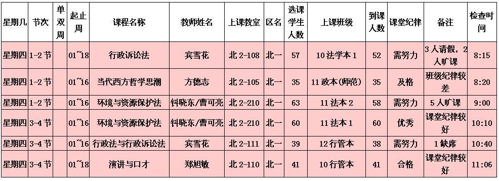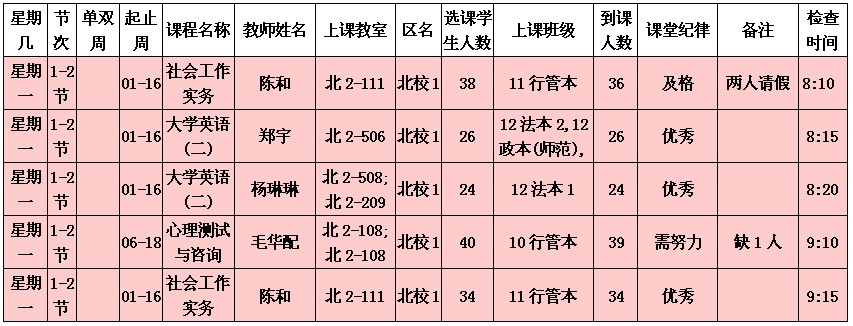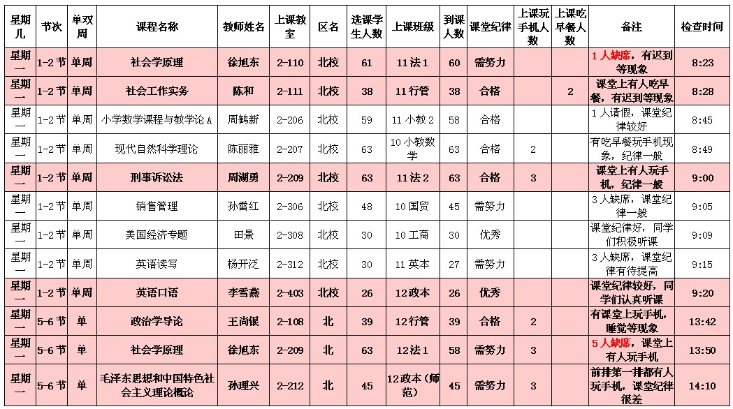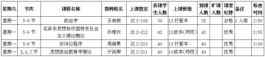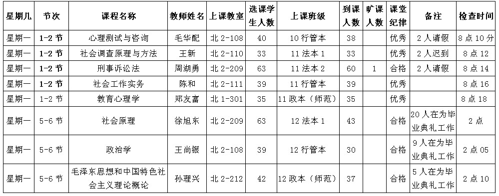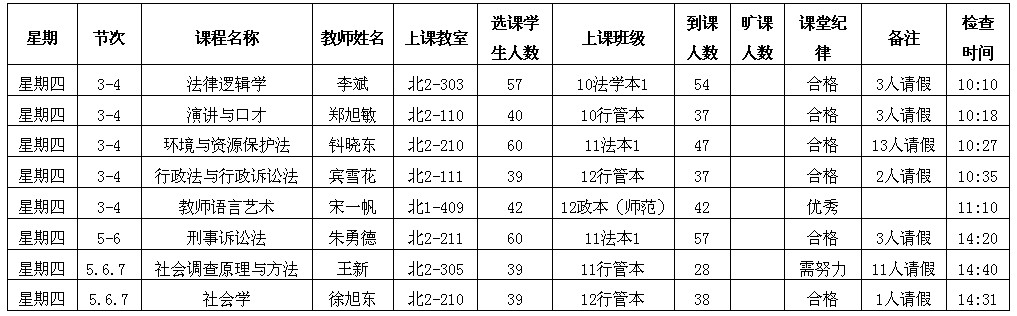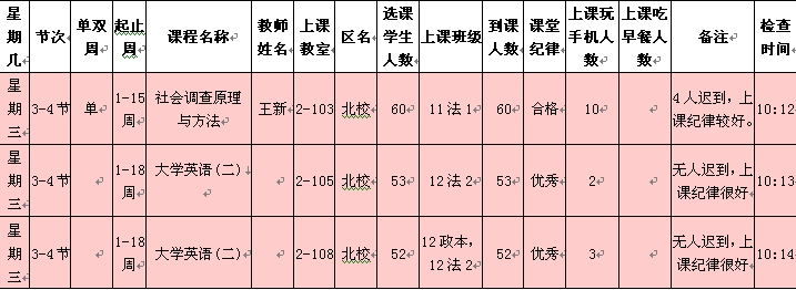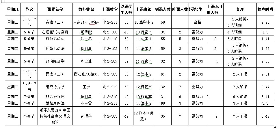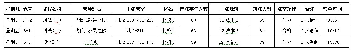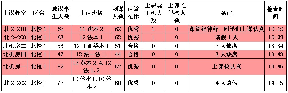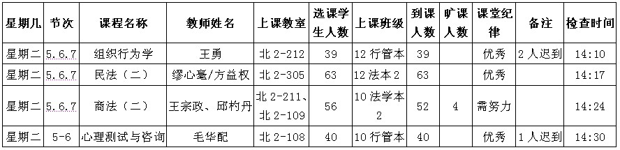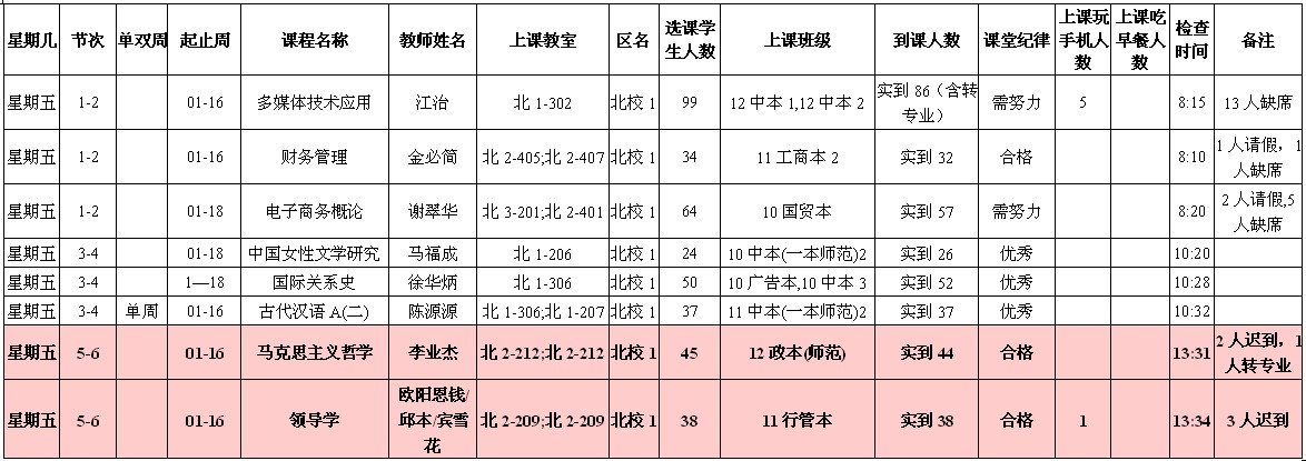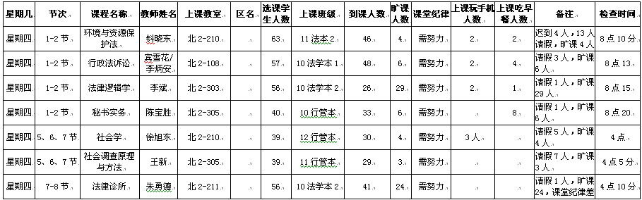 5月13日至5月17日(第12周)学风检查情况汇总