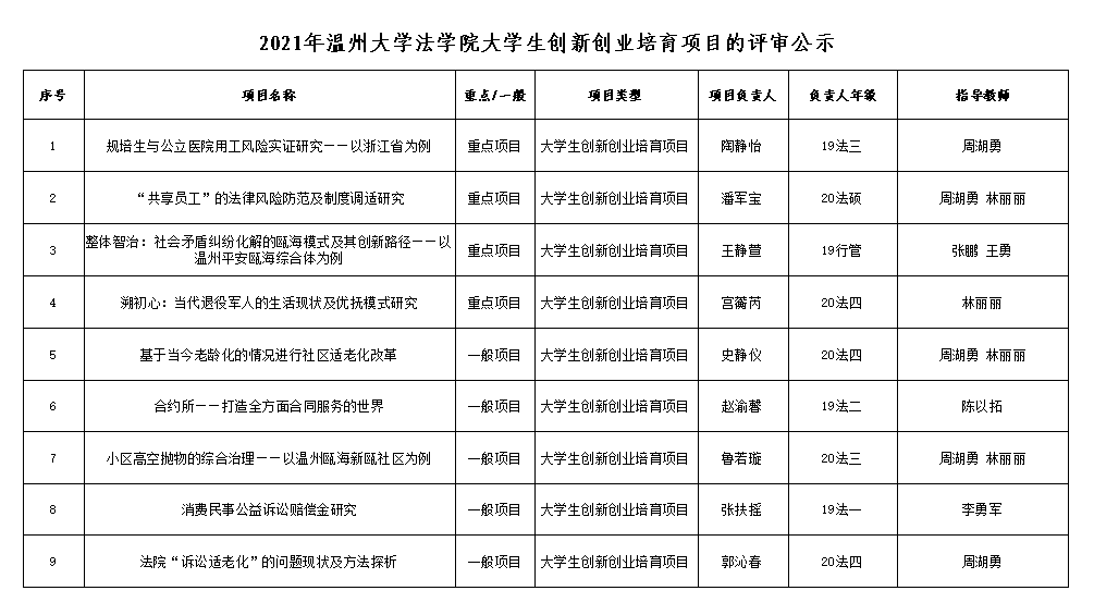 根据《香蕉视频 关于开展2021年度大学生创新创业培育项目立项申报的通知》要求,经学生本人申请,香蕉视频 专家评审评定,共评选出重点项目4项,一般项目5项,现将立项结果予以公示。