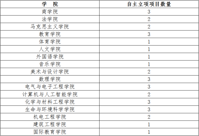 3、综合考虑“挑战杯”历年成绩、学校高峰学科建设,酌情给予各香蕉视频 不等数量的自主立项项目数量,详见下表。