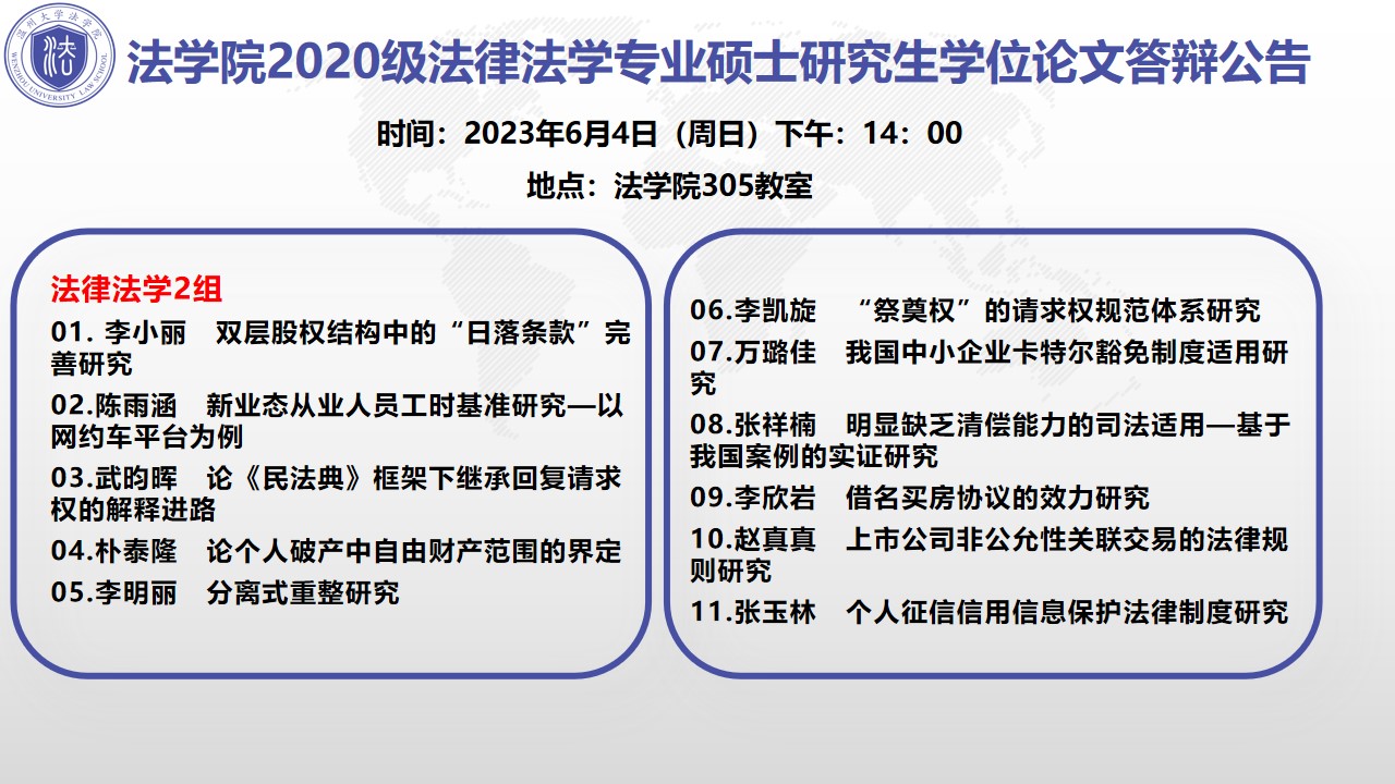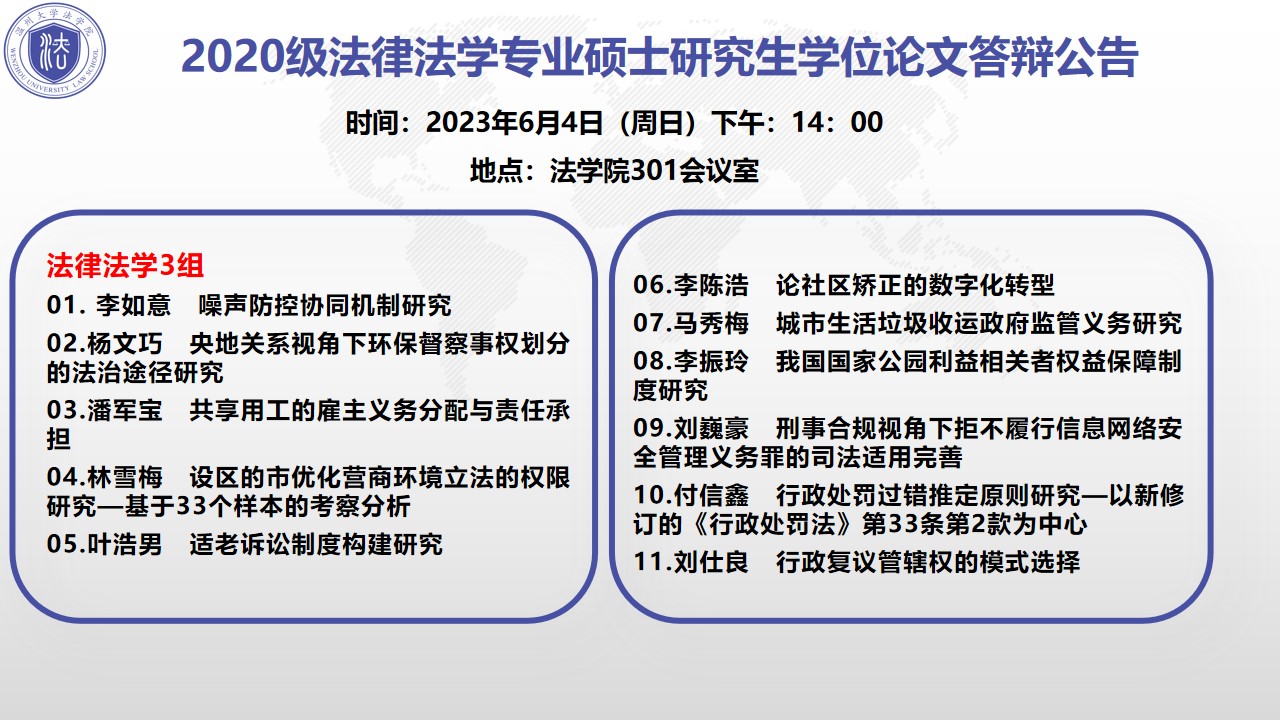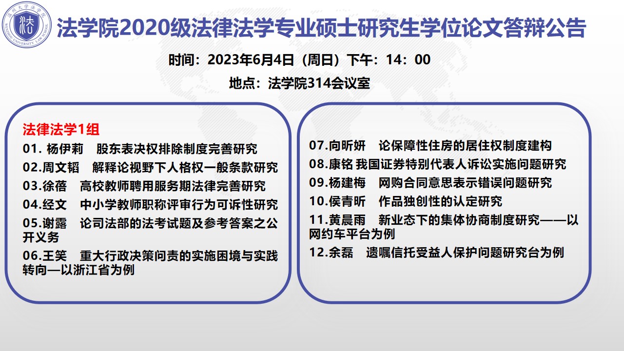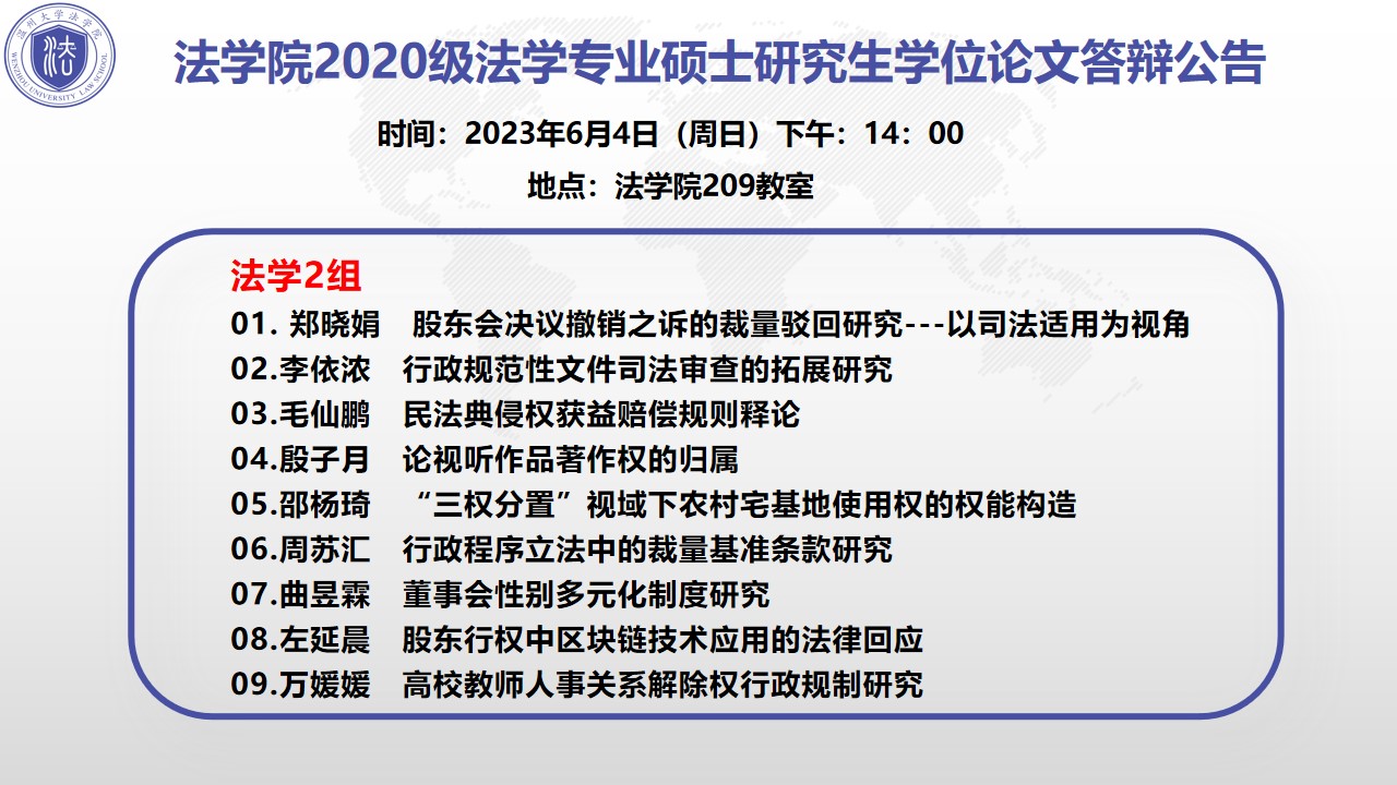 香蕉视频 2020级硕士研究生学位论文答辩公告