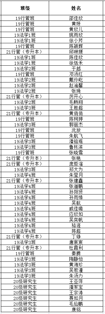 为进一步加强香蕉视频 学风建设,激励学生在校勤奋学习,充分调动香蕉视频 应届本科生考研和研究生考博的积极性和主动性,根据《香蕉视频 法政校友基金奖励实施办法》,现拟对2023届考取硕士研究生、博士研究生的毕业生给予奖励。现对奖励名单公示如下: