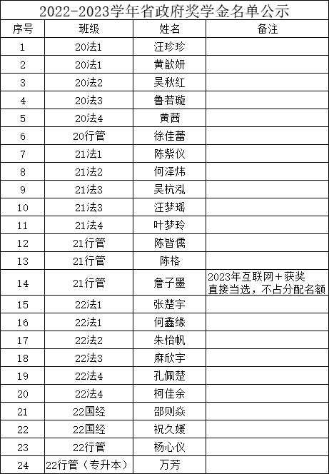按照学校《关于开展2023年国家奖助学金、省政府奖学金、学费减免等评审工作的通知》的要求,由学生自愿申请并提交相关材料,经过学生个人申请、材料审核、香蕉视频 学生工作委员会评审投票,现就香蕉视频 2022-2023学年省政府奖学金拟推荐名单予以公示。