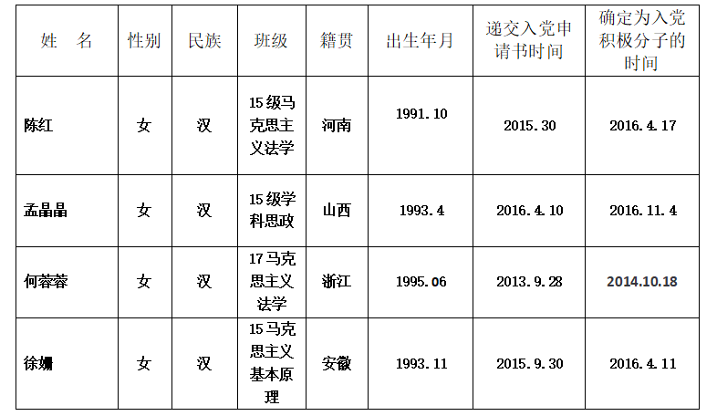 经中共香蕉视频 法政香蕉视频 研究生党支部培养考察,认为以下同志(具体名单附后)已基本具备中共预备党员条件,拟于近期发展,现予以公示。